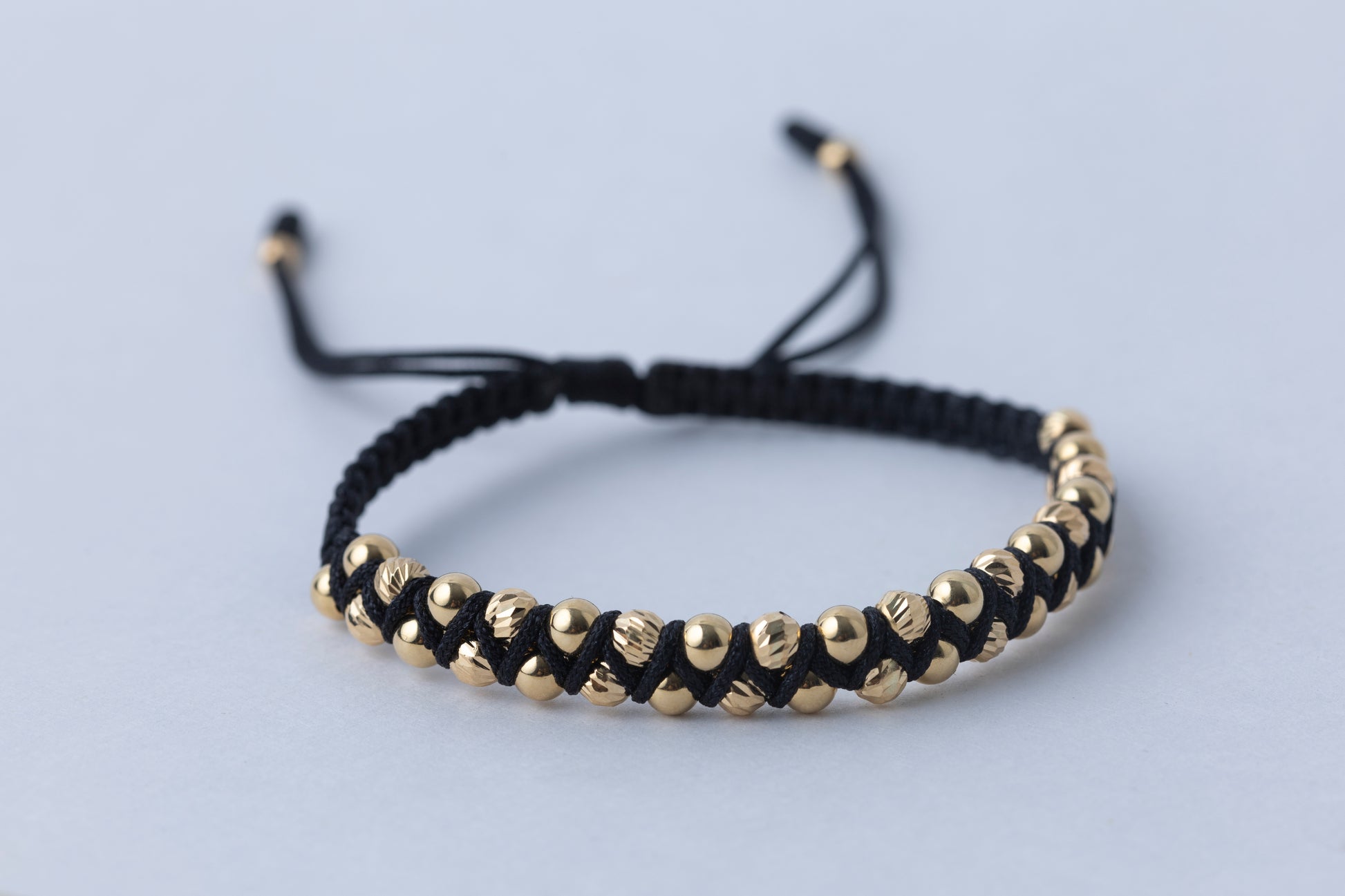 Esta pulsera negra trenzada está hecha de oro 18k de alta calidad. Con un diseño resistente y elegante, esta pulsera es perfecta para cualquier ocasión.