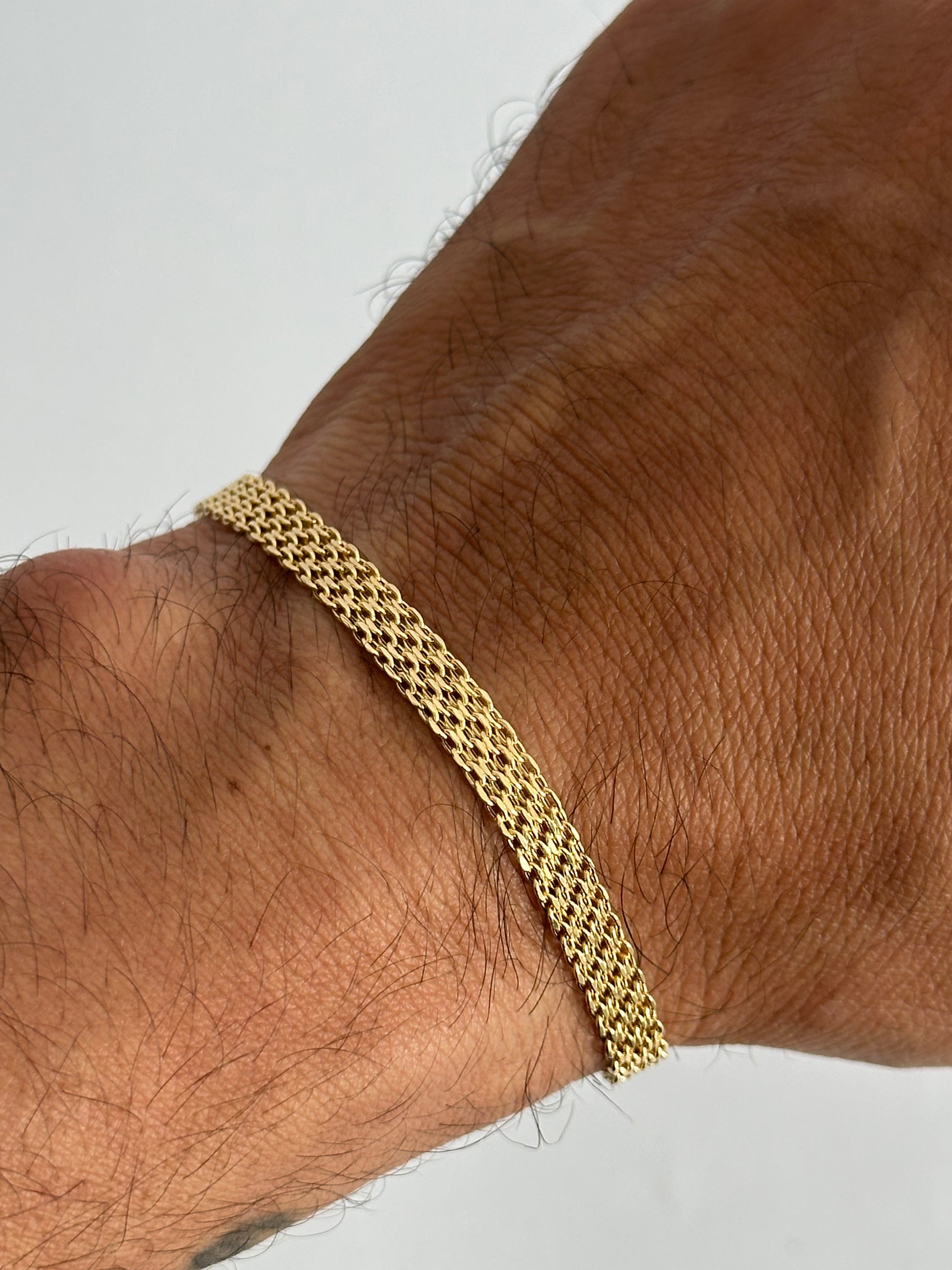 La pulsera de eslabones en oro 18k ofrece una combinación perfecta de robustez y elegancia. Cada eslabón está cuidadosamente elaborado para garantizar durabilidad y un acabado impecable que realza el brillo natural del oro. Esta pieza versátil es ideal para complementar tanto atuendos formales como casuales, aportando un toque sofisticado y atemporal a tu estilo.