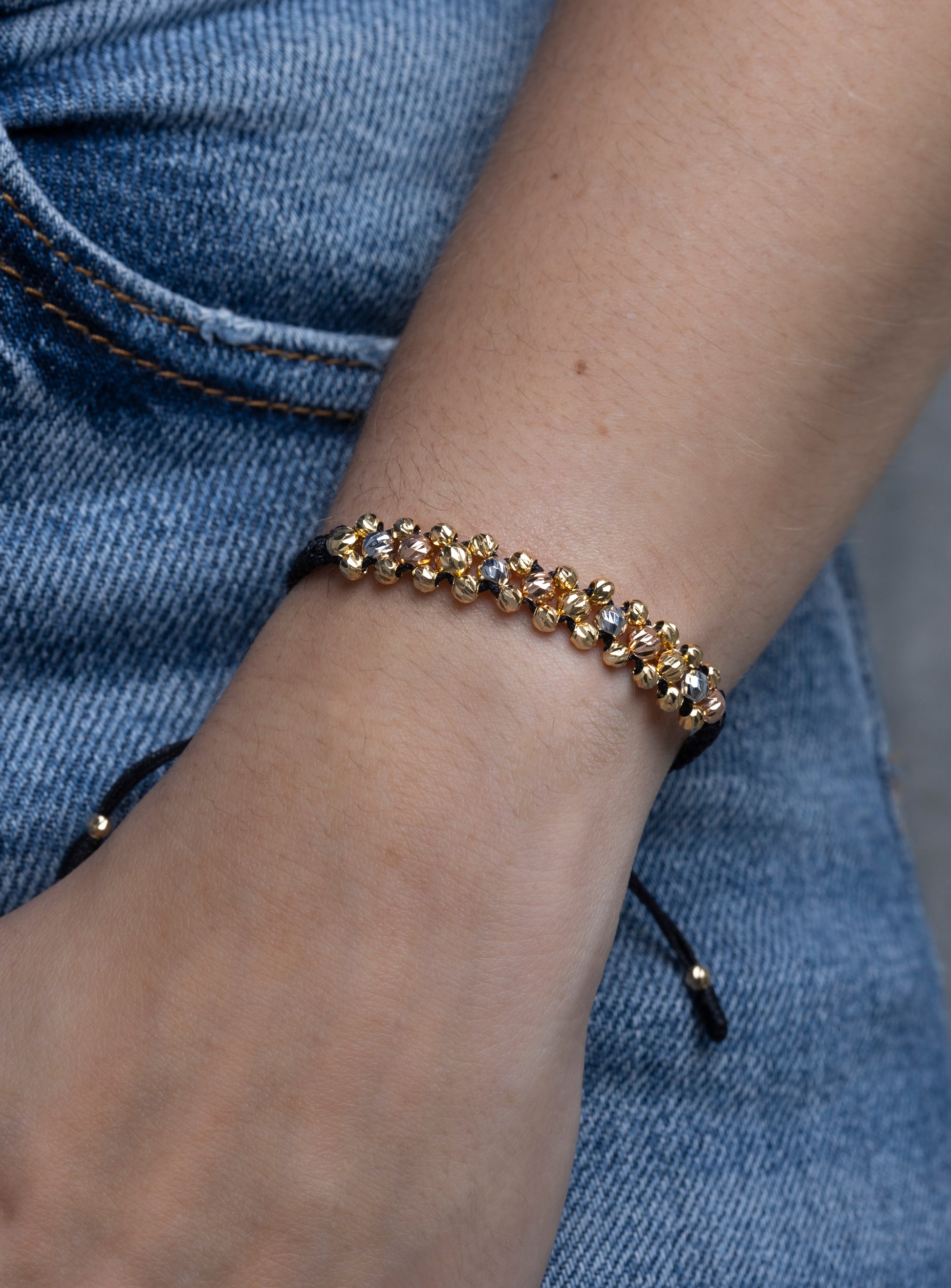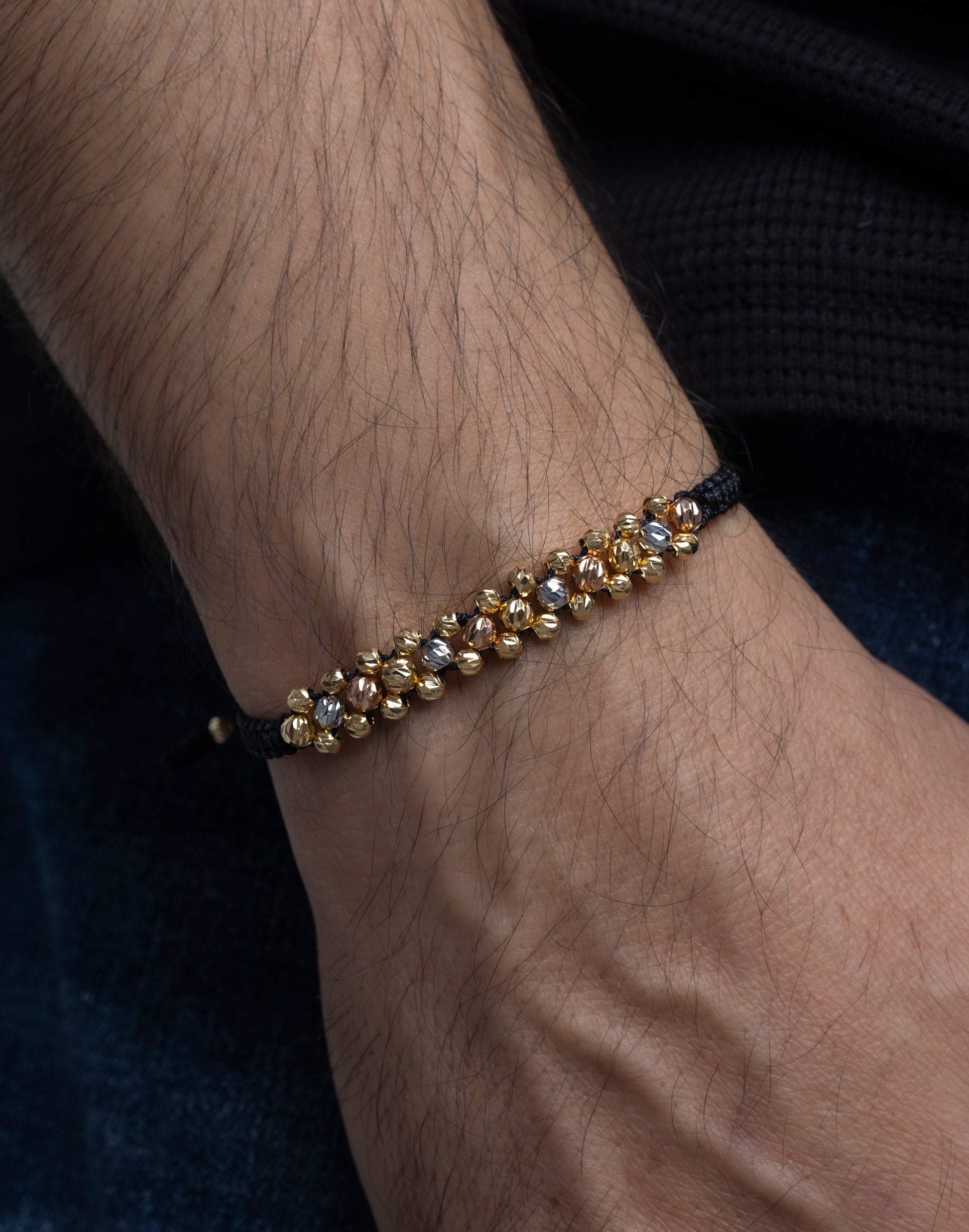 Pulso Tejido Tres Carriles Tres Oros en 18k